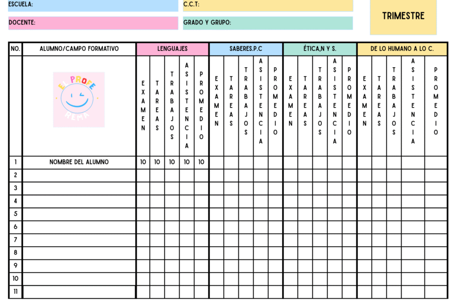 Descarga el registro de evaluaciones y edítalo con el nombre de tus alumnos. Sólo dale en descarga. Descarga aquí